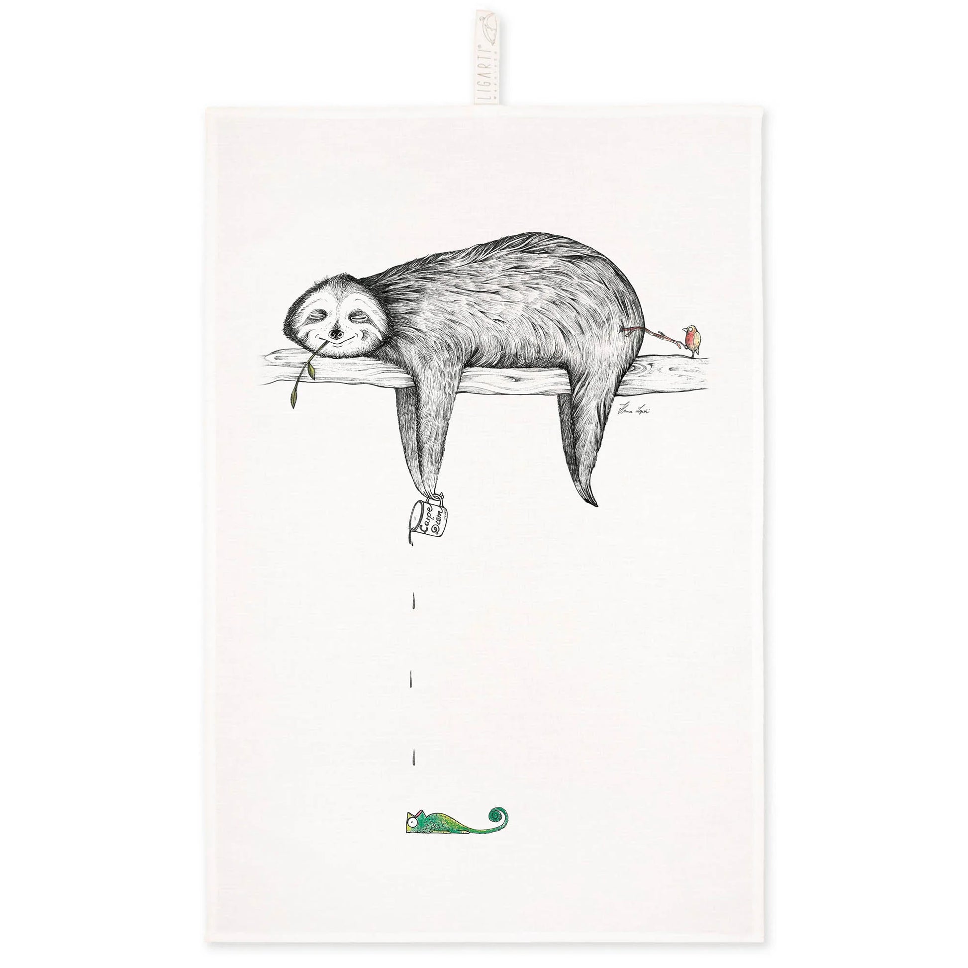 Dieses Geschirrtuch mit Faultier-Motiv ist ein kunstvolles Highlight für jede Küche und stammt aus der Feder der Wuppertaler Künstlerin Ligeti. Jedes Design wird von ihr liebevoll und humorvoll handgemalt, bevor es auf strapazierfähiges Halbleinen gedruckt wird.